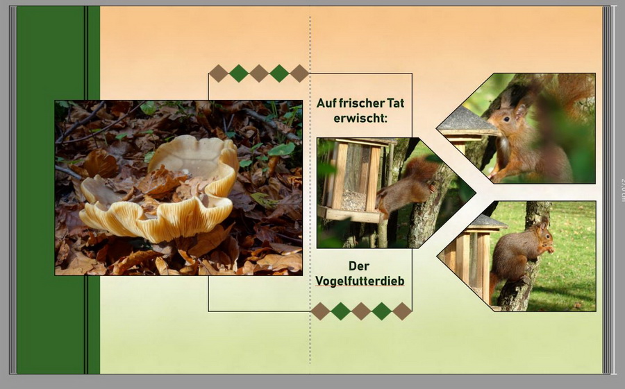 Re: 9. Dezember | Kategorie: SoftwareDie grünen Streifen sind einerseits Hintergrund und Rahmen für die Bilder und füllen andererseits die Flächen, damit linke und rechte Seite ausgerichtet sind und die Bildausschnitte für das Bild optimal gewählt werden können.