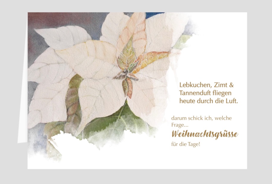 Danke Koala Auch der "Bauplan" mit dem Fenster, finde ich einfach toll. Ich finde es Klasse das einige Mitmachen und ihre Kreationen hier teilen. Dankeschön. Vielleicht auch ein Ansporn für weitere User samt Kreationen... schön das dir meine Ideen gefallen! Den Weihnachtsstern hab ich mit Acryl Farben auf Leinwand gemalt, damit die schönen Farben erhalten bleiben hab ich das Bild ( 40 x 40cm ) mit Klarlack matt eingesprüht. Als Vorlage hatte ich einen weißen Weihnachtsstern vor mir stehen. Find ich toll das du auch gern malst eine Idee hab ich noch, Re: Gestaltungsideen WeihnachtskartenHier noch ein paar Beispiele von mir.