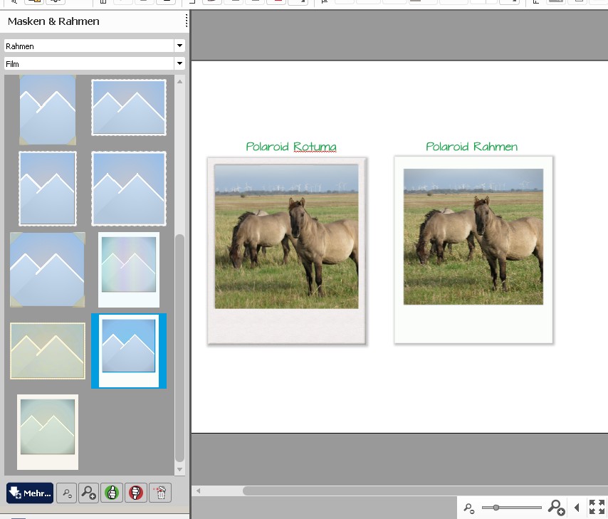Re: Collage erstellenIch habe heute ein kleines Programm entdeckt, mit dem man Bilder mit einem Polaroid-Rahmen versehen kann. Beschriften und mit Schatten versehen ist auch im Programm möglich.