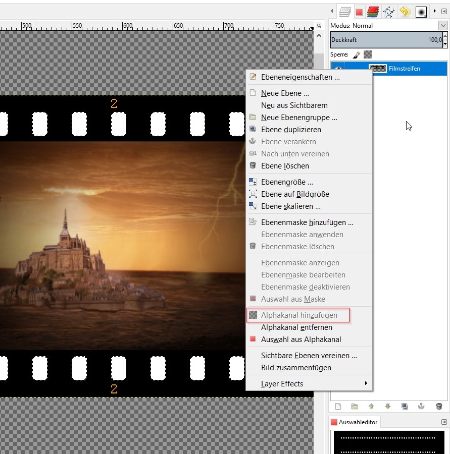 Josefia Re: Clipart FilmJosefia hat geschrieben: Ich habe dann aber noch ein bisschen Feintuning gemacht: Ich habe die Lochstreifen transparent gemacht.... das sieht toll aus! Ich hab auch alles wie von dir beschrieben so hinbekommen, einzig den Lochstreifen krieg ich nicht transparent. Verrätst du mir, wie du es gemacht hast? Vielen Dank & liebe Grüße Susi Re: Clipart FilmHallo Susi,