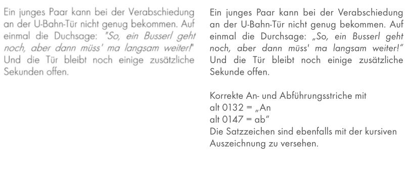 Prima und danke schön. Damit können sich alle ein Bild von der auffälligen Schrift machen.grasmuecke hat geschrieben: Mir ist lediglich aufgefallen, dass beim kursiven Text das Doppelhochkomma zu nah am vorangehenden Buchstaben klebt. Die "Störungen" im Text scheinen nur duch den Blocksatz bedingt zu sein.