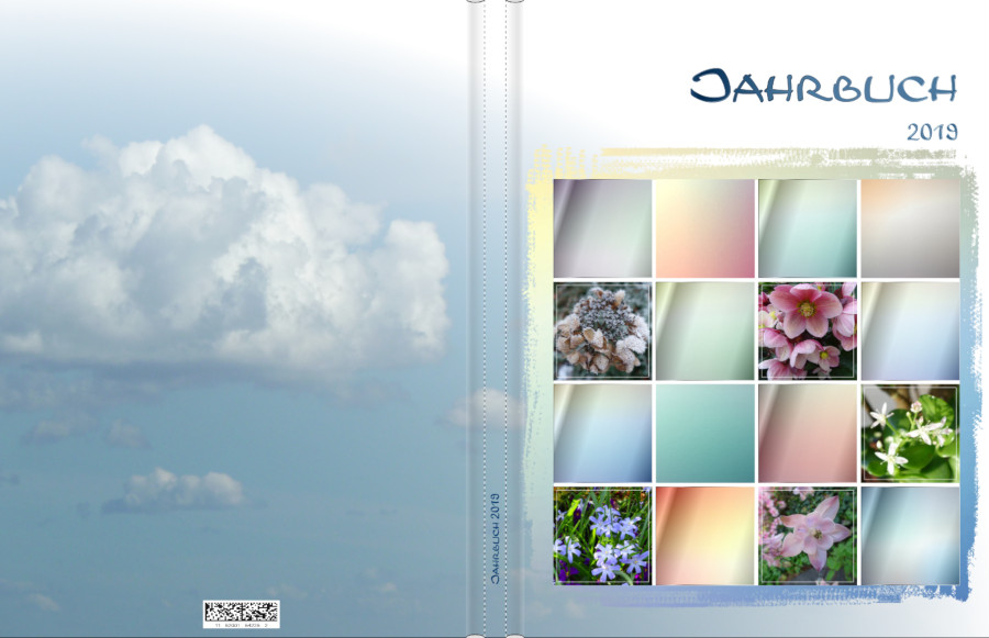mir gefällt das zarte Cover sehr gut. Dennoch ist es auch mir etwas zu unruhig. Ich könnte mir vorstellen, dass es ruhiger wird und die Veredelung noch interessanter wirkt, wenn du pro Zeile nur ein Quadrat veredelst. Den Wolkenhimmel würde ich komplett auf der Rückseite lassen, denn wenn sich Himmel- und Quadratfarbe beißen, zerstört das deinen schönen Effekt. Ich frage mich auch gerade, warum du "Jahrbuch" als Titel ausgesucht hast. Vielleicht reicht ja 2019 oder eine etwas persönlichere Formulierung. Zu der zarten Gestaltung würde ich eine leichtere Schrift schöner finden, die LeHavre wirkt auf mich dazu geradezu stämmig. liebe Grüße