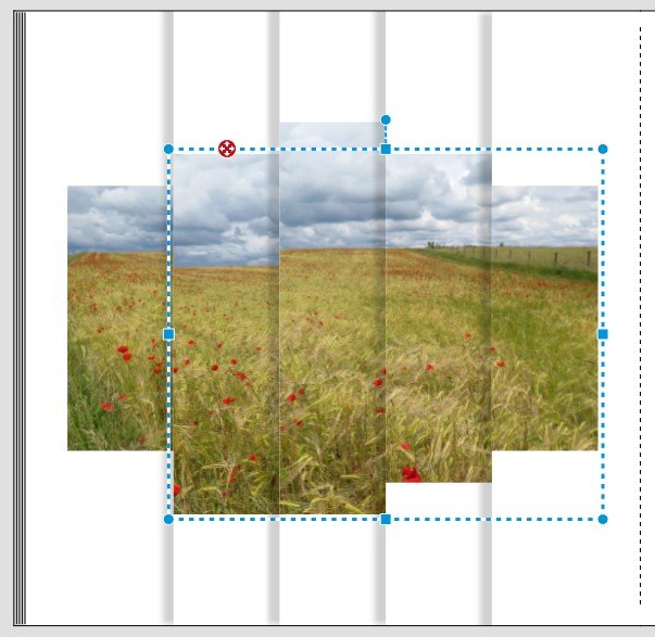 Ich habe jetzt beim Nachstellen mithilfe des Magneten gearbeitet, im Original damals mit dem Raster. Außer mit den Seitenanfassern von oben nach unten und dann von unten nach oben schieben musste ich nichts machen. Die 5 Fotos hatte ich zuvor deckungsgleich übereinandergelegt. Liebe Grüße