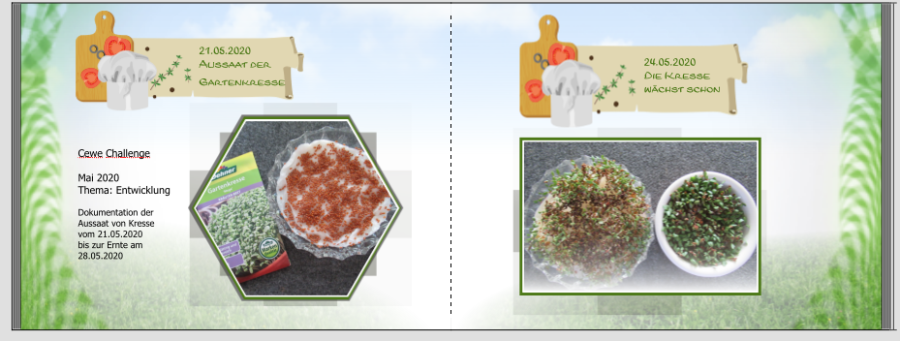 Urlaubsfan Re: 05. Dezember | Kategorie: KreativesFür diese Aufgabe habe ich jetzt ein "Projekttagebuch" aus der Mai-Challenge mit dem Thema Entwicklung gemacht. Ich hatte hierzu Kresse auf meiner Fensterbank gezogen und die Entwicklung fotografisch festgehalten.