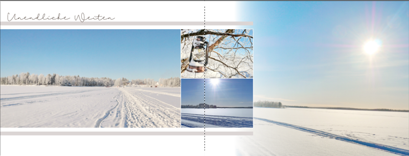 Re: Lappland Fotobuch HilfeHallo Nici.h, ich bevorzuge die unendlichen Weiten. Ich mag kein Englisch in Büchern, Texten, die nichts mit englischsprachigen Ländern zu tun haben. Statt What a view dann noch eher Seeblick und ein kurzer Hinweis, dass ihr auf einem See wart. Und magst Du mal probieren, das kleine untere Foto mit dem Foto rechts zu tauschen?