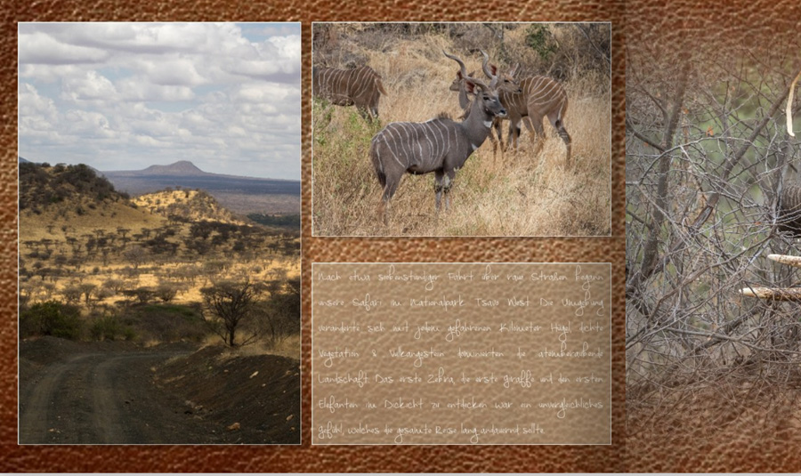 Wenn Schrift über ein Bild überlagert wird, dann sollte sie nicht in Konkurrenz zum Bildmotiv stehen. Sonst "komme ich mit dem Schauen nicht nach". Im oberen Bild hätte ich die Schrift eher nicht über die Personengruppe gelegt. Und dann - wie schon von DSL-Schnell gesagt - muss es auch noch lesbar sein. Vielleicht ist durch die kleine Darstellung der Seiten die Lesbarkeit besonders beeinträchtigt. Ich denke, dass die Schreibschrift gut zum Tagebuchcharakter passt. Aber gerade bei einer Schreibschrift würde ich einen Flattersatz bevorzugen. Die Zeilenabstände wirken für mich auch etwas groß. Ich weiß nicht, wie groß die Schrift überhaupt ist, aber möglicherweise sollte die Schrift überhaupt auch etwas kleiner sein. Sonst schließe ich mich Bäuerins Aussagen an.