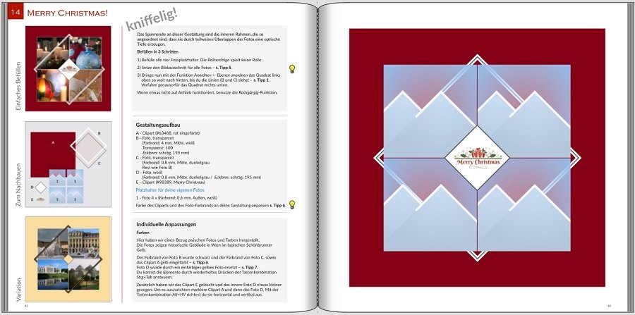 das ist wirklich ein ganz tolles Musterbuch, das Ihr hier für die nicht so Begabten eingestellt habt. Der Download war schnell gemacht. Beide Dateien sind zwar auf dem PC, ich kann das FB öffnen und sehe auch die dazugehörigen mcf.Dateien doch es gelingt mir nicht, beides zusammen zu führen, auch nicht nach 3 Download Versuchen. Im FB habe ich nur leere Platzhalter. Die einfacheren Beispiele kann ich mit eigenen Fotos füllen und sehe das Ergebnis. Ich habe auch mit den leeren Platzhaltern und durch Rumprobieren schon eine Menge dazu gelernt. Bei den komplexeren Gestgaltungen komme ich an meine Grenzen. Da wäre es schon hilfreich, wenn ich den Originalaufbau nachvollziehen könnte. Habt Ihr eine Idee, wie ich FB und mfc.Dateien zusammen bekommen kann. Besten Dank schon mal vorab!