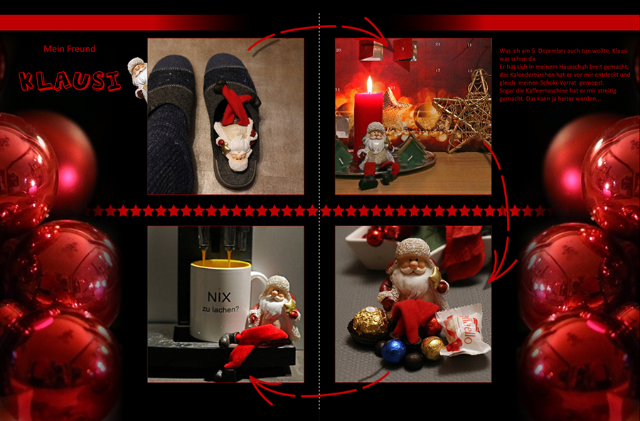 Re: 9. Dezember | Kategorie: SoftwareDa mir die Challenge vom 5. Dezember so viel Spaß gemacht hat mit den vielen tollen Geschichten, habe ich zusammen mit meinem Klausi noch ein bisschen gebastelt: