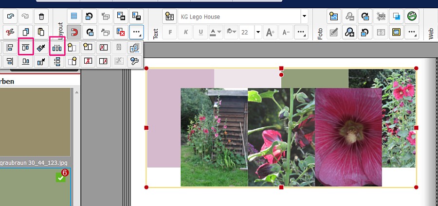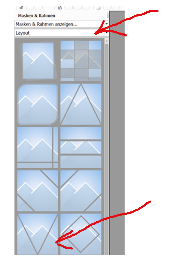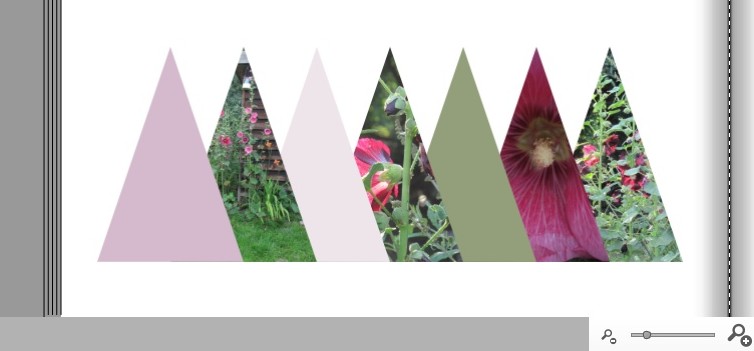 ich habe mir letztens so eine Testseite erstellt und ich habe nur die Dreiecksmasken dafür verwendet. Jedes zweite Bild habe ich dann mit "Objekte drehen" und "Foto drehen" rotiert. Ich beschreibe mal meine (daraus entstandene) Vorgehensweise: Ich habe zuerst 4 Fotos (gerade Anzahl) eingefügt, auf die gleiche Größe gebracht und mit den magnetischen Hilfslinien bündig ausgerichtet. Dann habe ich 3 Fotos (ungerade Anzahl) gleicher Größe eingefügt und dann alle zusammen mit der Funktion "Objekte verteilen" und "Oben ausrichten" ausgerichtet. So hatte ich schon mal die passenden Abstände. Viel Spaß beim Ausprobieren liebe Grüße