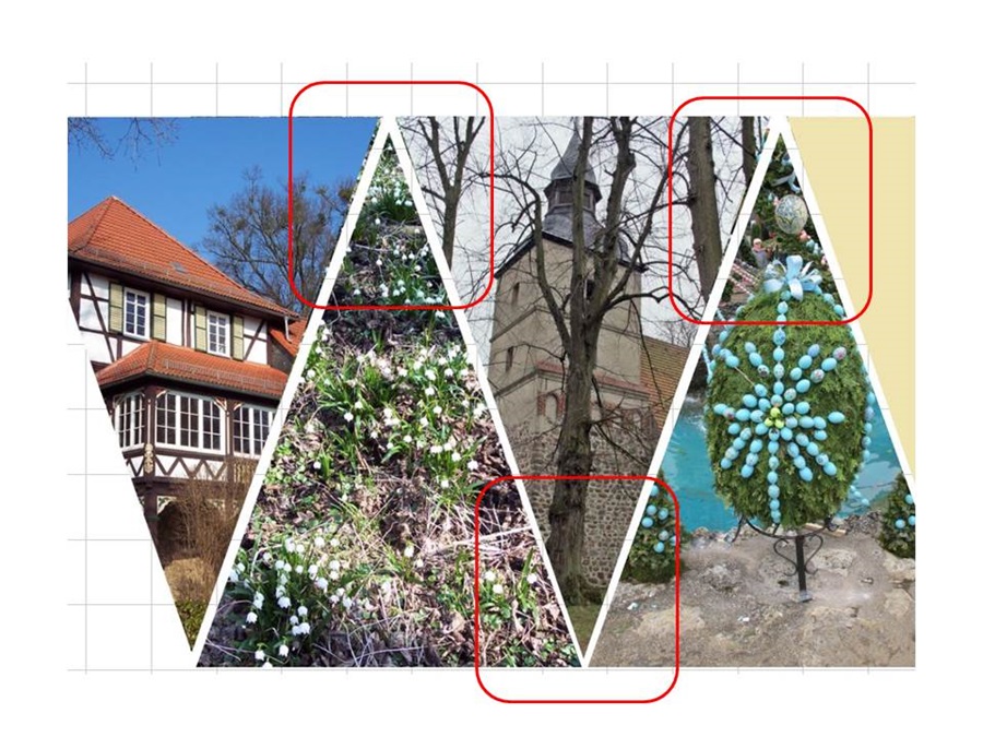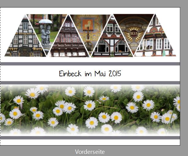 mir gefällt es, ist auch eine gute Idee. Statt den Gänseblümchen würde ich eine Alternative suchen ,da die obere Reihe so Ton in Ton ist, dass ist der falsche Ausdruck dafür aber mir fällt der es genauert beschreibt nicht ein. Es fehlt das Tüpfchen auf dem I. Du hast ja den Mai erwähnt und der hat viele Farben in der Natur. Die Art der Gestaltung würde ich aber lassen. Dass alles ist nur mein Empfinden und meine Meinung. Viel Spass beim ausprobieren und viel Erfolg, weiter so. gruß Re: Vorlage mit dreieckigen Fotos auf dem Covergrasmuecke hat geschrieben: Diese Gestaltung hat es mir auch angetan. Ich habe auch schon damit experimentiert, weil ich einen Weg finden wollte, diese Dreiecksgestaltung herzustellen.