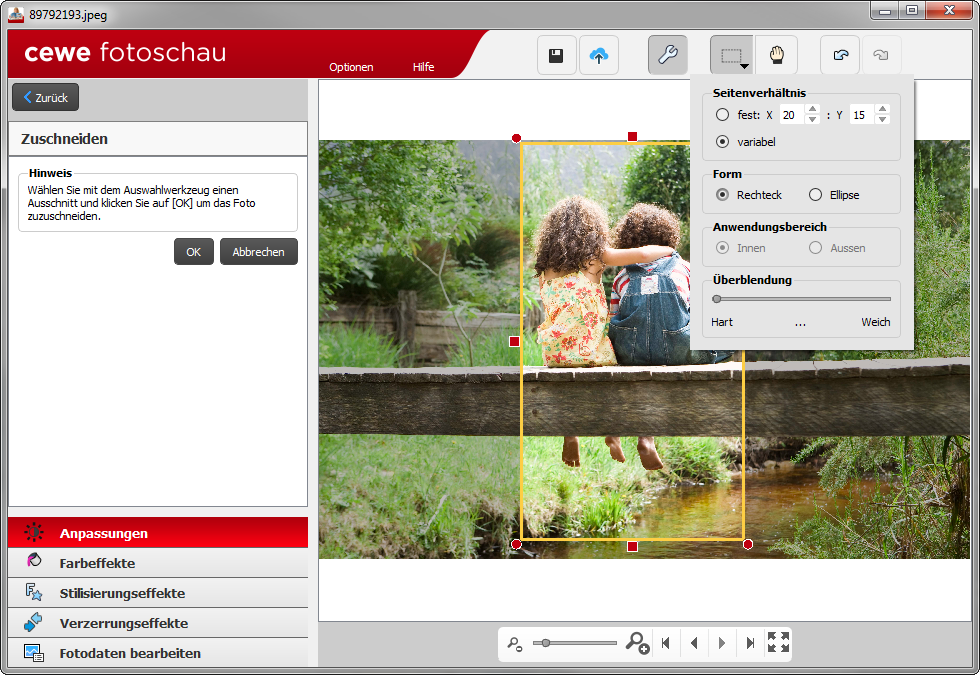 Manchmal müssen Sie sich beeilen Ihr Motiv zu fotografieren, sodass Sie keine Zeit haben den perfekten Ausschnitt zu wählen. Glücklicherweise können Sie in der Fotoschau auch nachträglich noch den richtigen Ausschnitt bestimmen und störende Elemente aus dem Foto schneiden.