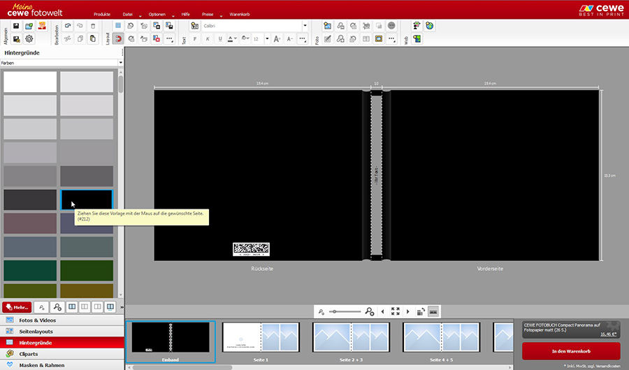 Zunächst fügen Sie einen Hintergrund ein. Wir haben für unser Layout einen schlichten, schwarzen Hintergrund verwendet (#212). Dieses passt unserem Geschmack nach am besten zum verwendeten Coverfoto.