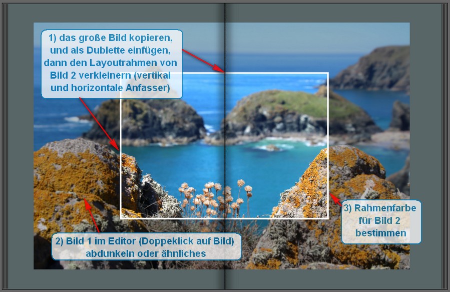 ich bin neu hier im Forum und hoffe, dass ihr mir helfen könnt. Dafür schon einmal herzlichen Dank. Ich habe schon mehrere Fotobücher erstellt und natürlich möchte man es beim Nächsten vielleicht noch ein bißchen besser machen. In der Galerie habe ich jetzt ein Buch von Frau Ursula Jochens über den Oman angeschaut, was mir außerordentlich gut gefällt. Nun meine Frage: Im Band 1 auf Seite 60/61 ist ein Ausschnitt stärker hervorgehoben mit weißem Rand. Wie geht das ? Ich habe schon gefühlt alles ausprobiert, was ich hier im Forum an Tipps gefunden habe. Es klappt nicht. Was mache ich falsch? Danke für Antworten, Gruß dukan
