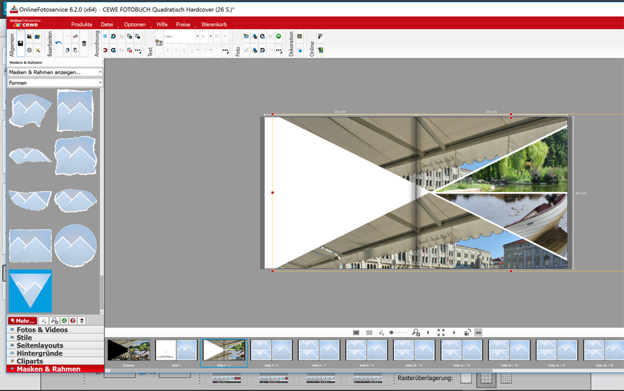 Wie geht dieses Seite?Liebe Cewe-Fans. Ich würde gerne als Cover für mein nächstes Fotobuch diese Seite machen, Seite 42 von "Namibia 2016" - https://www.cewe-community.com/global/e ... 2016-34046. Die runde Maske ist ja einfach, aber ich habe keine Maske/Rahmen für die 4 länglichen Bildergrößen gefunden. Kann mir jemand helfen bitte? LG Josefa