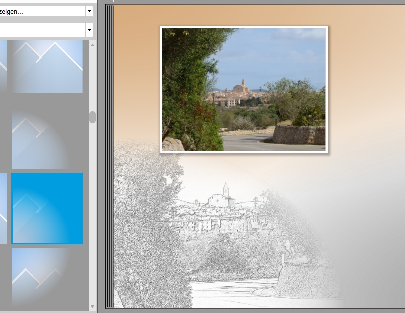... und das ist leider der Knackpunkt: Die Haptik von Büchern auf Fotopapier ist eben eine völlig andere.Viele beschreiben es so: Das Umblättern fühlt sich an wie bei einem strapazierfähigen Kinderbuch. Das muss man mögen! Ich zum Beispiel mag das, aber eben nur bei Kinderbüchern. Gleichwohl finde ich die Möglichkeit, über die Buchmitte hinaus gestalten zu können, auch toll. Wir warten deshalb immer noch sehnsüchtig auf das Produkt "Digitaldruck mit Layflatbindung". Re: Wie wird diese Seite gestaltetSo, jetzt kommt die versprochene zweite Anleitung. Hier geht es um diese Seite, und zwar um die Hintergrundgestaltung: