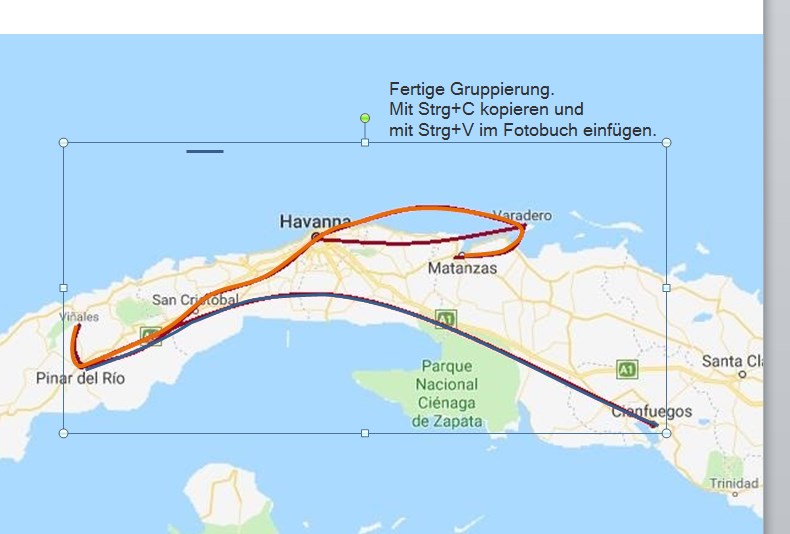 ich möchte gern auf einer Landkarte die Orte verbinden, an denen wir gewesen sind, ähnlich hier: https://www.cewe-community.com/global/e ... cuba-47477 Die Landkarte habe ich mittels Snipping Tool aus Google Maps erstellt und die Linien mit Paint eingefügt. Leider sehen die Linien sehr gezackelt aus: LG, Fiskbo Re: Landkarte - Orte verbindenHallo Fiskbo,