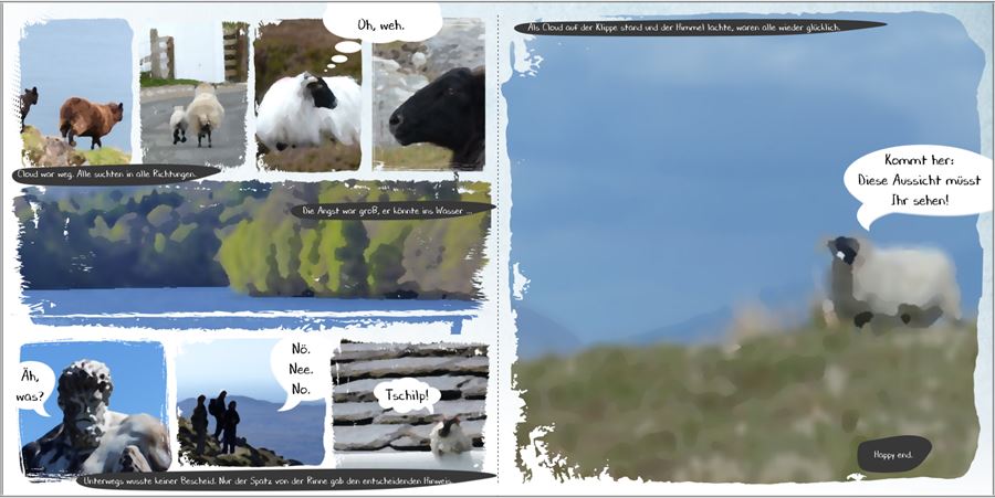 Das ist mein erster selbst gemachter Comic. Und die Herstellung war fummelig und aufwändig. Ich habe ein paar Schafe auf große Reise geschickt. Weit sind sie noch nicht gekommen ...