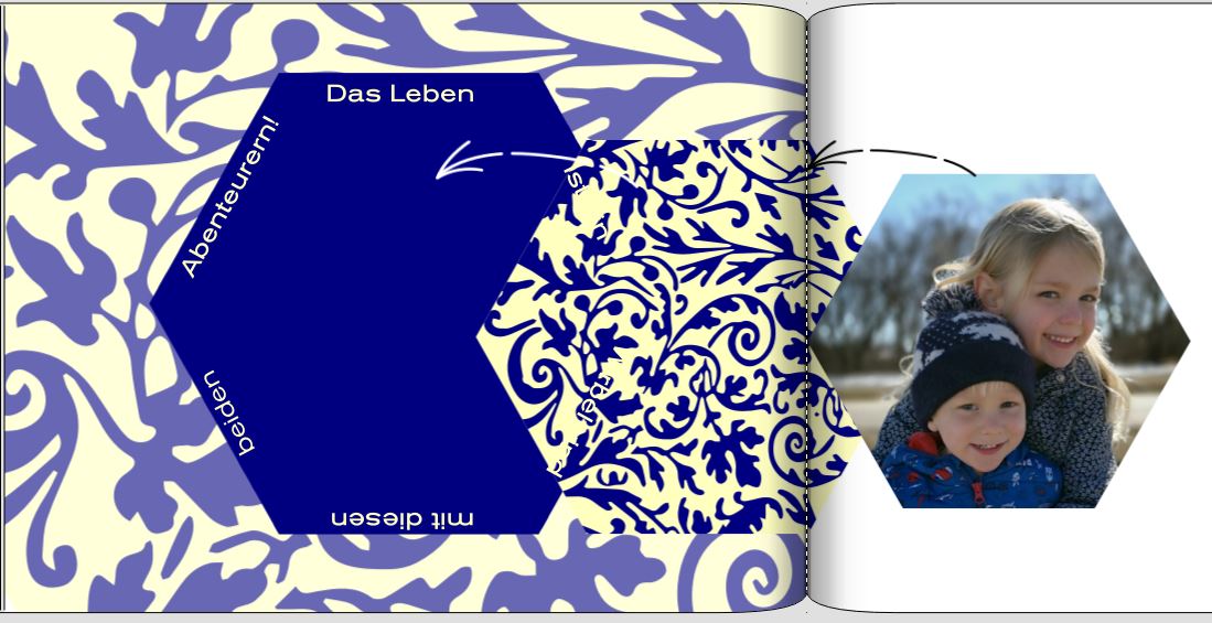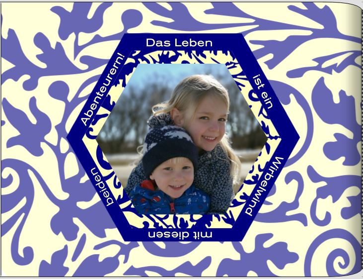 Den Text habe ich über mehrere Textboxen verteilt und diese um das Foto herum platziert.