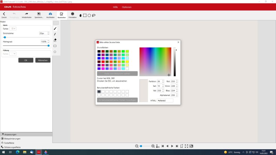 Danke Basilikum. Das habe ich so gemacht, Also Bild-Seitenhintergrund und Hintergrundbild hinter Textfeld mit dem genau gleichen Farbton gemalt und hoffe einfach, dass es dieses Mal ohne Probleme gedruckt wird.Ich habe mir meine Einstellungen nicht notiert, aber Silberdistel hat dir ohnehin schon weiter geholfen. Man muss einfach ein bisschen experimentieren, bis es einem gefällt. @CSSky Zu deiner Frage mit den bunten Seiten: Natürlich geht das bei einem einfarbigen Hintergrund auch. Wegen der potenziellen Farbabweichungsprobleme könntest du z. B. ein durch Malen hergestelltes einfarbiges Bild sowohl als Seitenhintergrund platzieren als auch für die kleinen Quadrate verwenden. Das Textfeld bleibt einfach transparent wie in Spicas Clipart-Vorschlag. LG Basilikum Viele Grüße CSSky