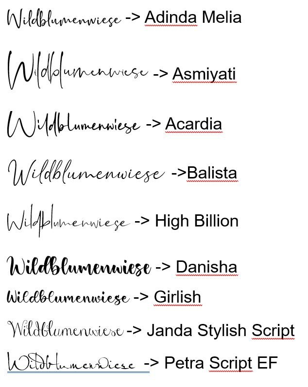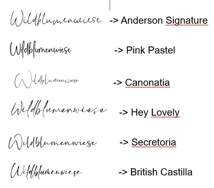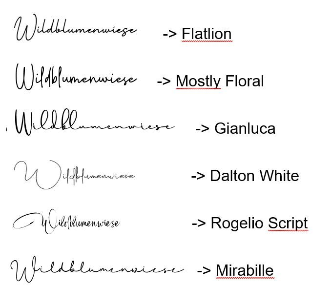 Mit WhatTheFont habe ich mich schon ausgetobt und nichts vergleichbares gefunden. Leider habe ich zu spät festgestellt, dass das "w" aussieht wie ein "m" und es damit jetzt ziemlich miese Blümchen sind ... Daher überlege ich, ob ich die Schriften tausche oder eher Formulierungen ändere. Liebe Grüße
