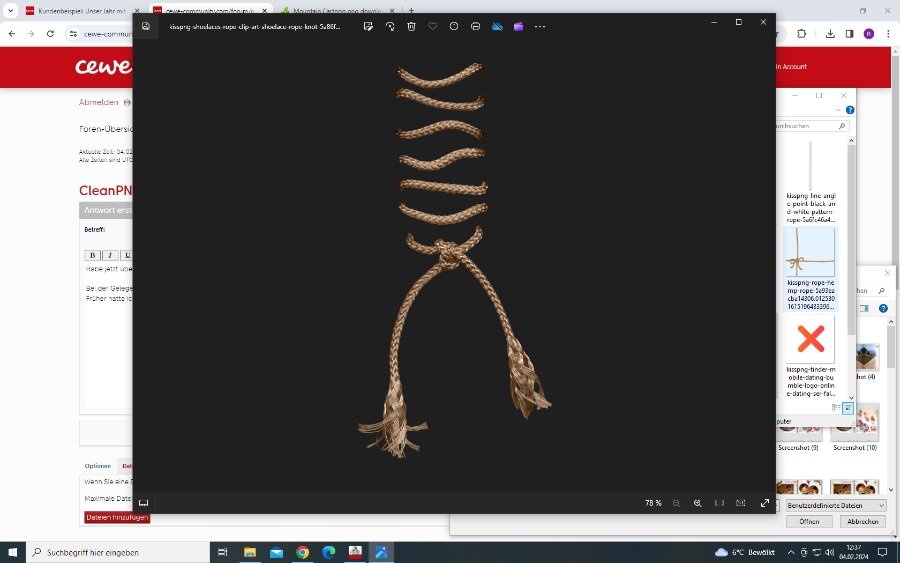 Danke für den Tipp - ich habe es nun mit dem englischen Begriff "rope" versucht - und siehe da... hat geklappt! Re: CleanPNGHallo,