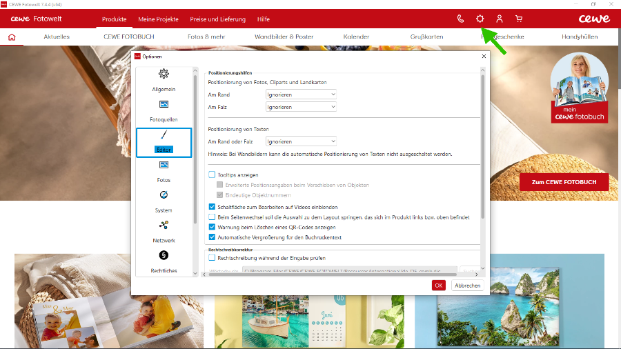 Wir laden Sie herzlich ein, die neue CEWE Community mit integriertem Forum zu entdecken und künftig zu nutzen. Das bisherige Forum, in dem Sie sich gerade befinden, steht nur noch bis Ende 2025 für neue Beiträge zur Verfügung und wird ab dem kommenden Jahr 2026 nur noch lesend zugänglich sein. Informieren und registrieren Sie sich jetzt in der neuen CEWE Community – wir freuen uns auf Sie! Re: Wo finde ich die "Optionen"Lieben Gruß