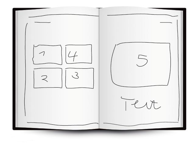 Ebenso kann man sich per Skizze Gedanken über die Verteilung und Anzahl der Fotos auf den Fotobuchseiten machen, ob man ein Inhaltsverzeichnis und/oder einen Text als Einleitung benötigt, Bildunterschriften als Erklärung notwendig werden.