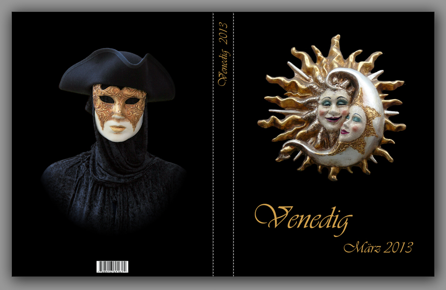 Es ist "Vivaldi", ich finde, zum Thema Venedig passt das sehr gut. Natürlich ist die Gestaltung ohne den grauen Rand - ich habe einen Screenshot gemacht und mit ein bisschen Hintergrund ausgeschnitten. Die Motive habe ich in PhotoShop freigestellt und als png-Datei auf den schwarzen Hintergrund gesetzt. Bei der Rückseite habe ich noch einen Verlauf darübergelegt, dass die Figur im Schwarz "ausläuft".