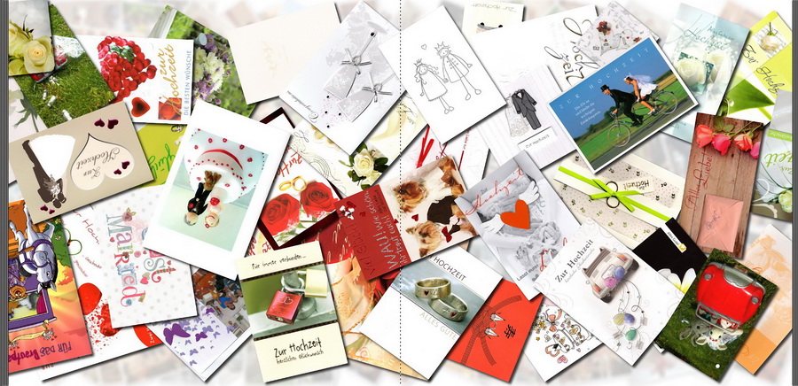 Das ist ja mal eine klasse Idee mit den Karten!Ich habe zum Beispiel für mein Hochzeitsbuch alle Glückwunschkarten eingescannt und die untere Collage als Doppelseite im Buch (Screenshot). Sieht super aus und wirkt sicher im Fotobuch ganz toll! LG