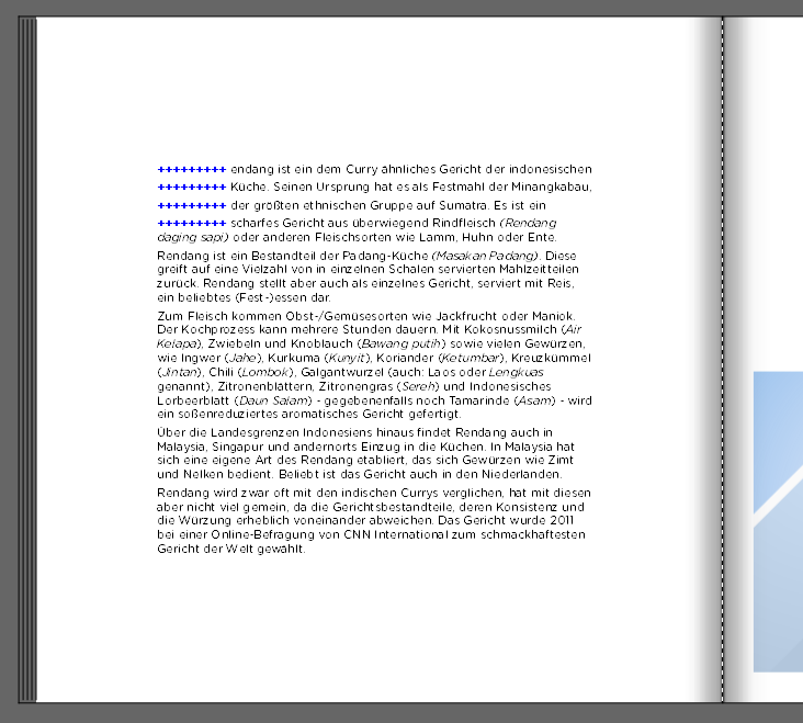 Anschließend überlegen Sie den Platz den die Initiale einnehmen soll, um den Raum mit Platzhalterzeichen zu füllen. Im Screenshot habe ich diese Platzhalter als blaue +-Zeichen markiert.