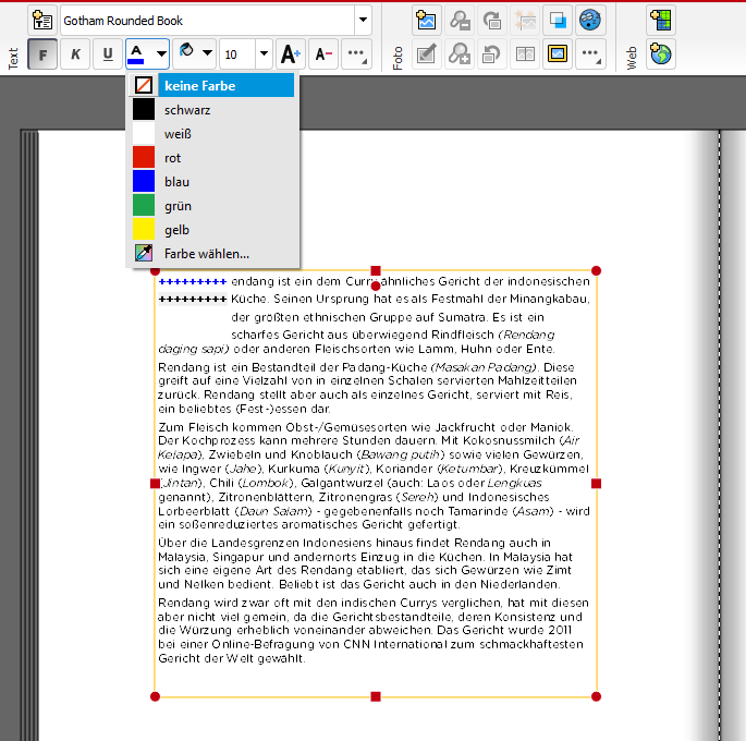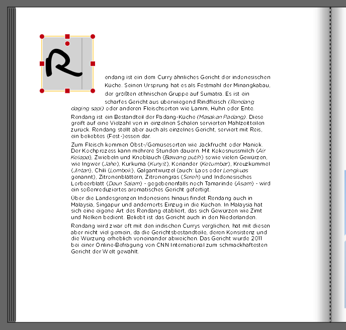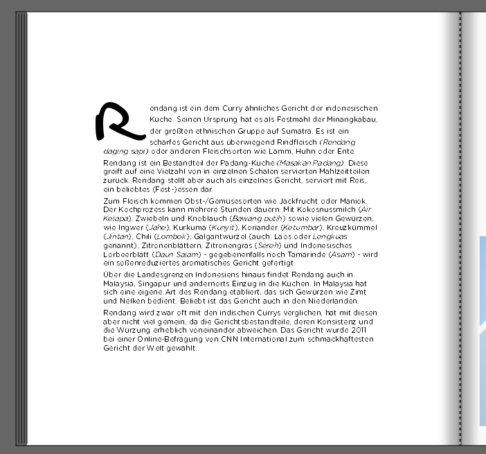 In unserer Software ist es jedoch bisher nicht möglich innerhalb eines Textfeldes einen Buchstaben auf diese Weise hervorzuheben, sodass er vor mehreren Zeilen steht. Aber mit einem kleinen Kniff, können Sie Initialen leicht gestalten.