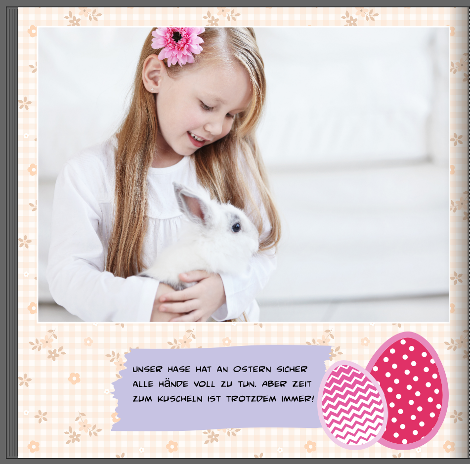 An Ostern freuen sich viele Kinder über das Suchen von kleinen Überraschungen. Dieses Versteckspiel können Sie auch auf Ihre Ostergestaltung übertragen, in dem Sie Gestaltungselemente hinter Ihren Fotos hervorschauen lassen zum Beispiel.