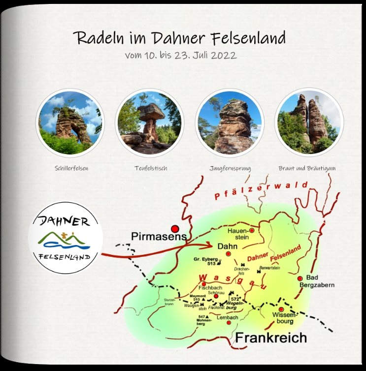 Hallo Harzluchs,Wow, was für ein Unterschied. Die Seite gefällt mir jetzt gut. Kann es z.Z.nur am Smartphone sehen, aber evtl. würde ich die Kreise noch eine Idee nach oben verschieben. Und der Pfeil ist m.E. auch nicht notwendig. Für Pirmasens würde ich die selbe Schriftgröße nehmen, wie für Dahn oder etwas kleiner. Noch viel Spass beim Gestalten. Es ist eine sehr schöne Gegend. Wir waren letztes Jahr dort zum Wandern. Liebe Grüße Asiafan