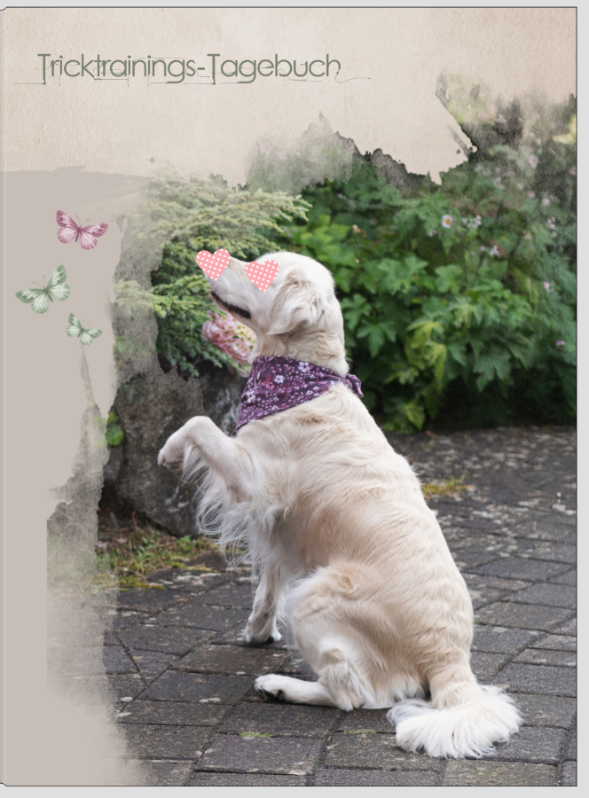 die pinke Farbe wirkt für mich deutlich weniger harmonisch. Gefragt habe ich mich auch, was eigentlich der Sinn der Schmetterlinge ist, müssen die wirklich sein? In dem Zusammenhang ist mir beim Betrachten aufgefallen, dass sich unter der Hundeschnauze in dem Busch ein merkwürdiger rosafarbener Fleck befindet. Irgendwie stört der mich. Hast du vielleicht ein anderes Bild von dieser Position deines Hundes mit einem anderen Hintergrund? Lieber Gruß Traumfänger Re: Cover für ThemenbuchHallo Traumfänger