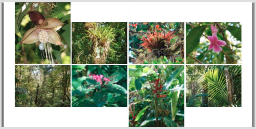 Costa RicaHallo meine Lieben, El Hierro ist fertig und steht im Bücherregal. jetzt gilt es, die Auswahl aus 3944 Fotos meines Costa-Rica-Urlaubs in ein Buch zu bringen...Es wird ein Buch mit nicht allzu viel Text auf den Seiten,Format XL, Layflat, so dass ich über den Falz gestalten kann. Allerdings finde ich momentan nicht einmal einen Anfang. Hier ein Versuch, die überbordende Natur auf eine Doppelseite zu bringen. Ich glaube sowieso, das es mehr ein Vogelbuch wird...
