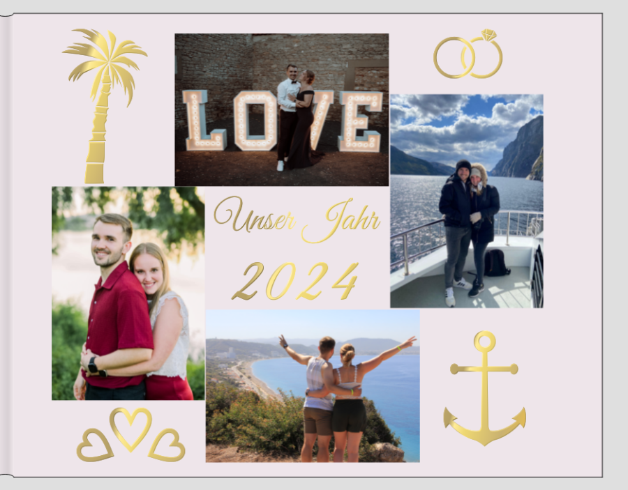 ich sitze gerade an unserem Jahrbuch 2024. Allerdings gefällt mir das Titelblatt noch nicht so ganz… Auf dem Titel sind auf jeden Fall unsere 4 Highlights des Jahres 2024 zu sehen. Allerdings weiß ich nicht so Recht, wie man den Hintergrund dafür gestalten könnte? Ich wäre sehr dankbar für Tipps oder Inspirationen! LG