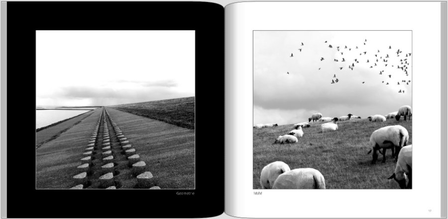Re: Black & WhiteAuf Wunsch von Traumfänger poste ich hier gern ein paar Screenshots aus einem kleinen Schwarzweiß-Projekt. Es ist als Zusatz zu einem Urlaubs(Tage)buch entstanden und sammelt daher nur wenige ausgesuchte Motive je Reisetag. Ich wollte einfach mal schauen, wie eine solch schlichte Gestaltung über mehrere Seiten gedruckt wirkt und ob sie mich auch langfristig überzeugt.