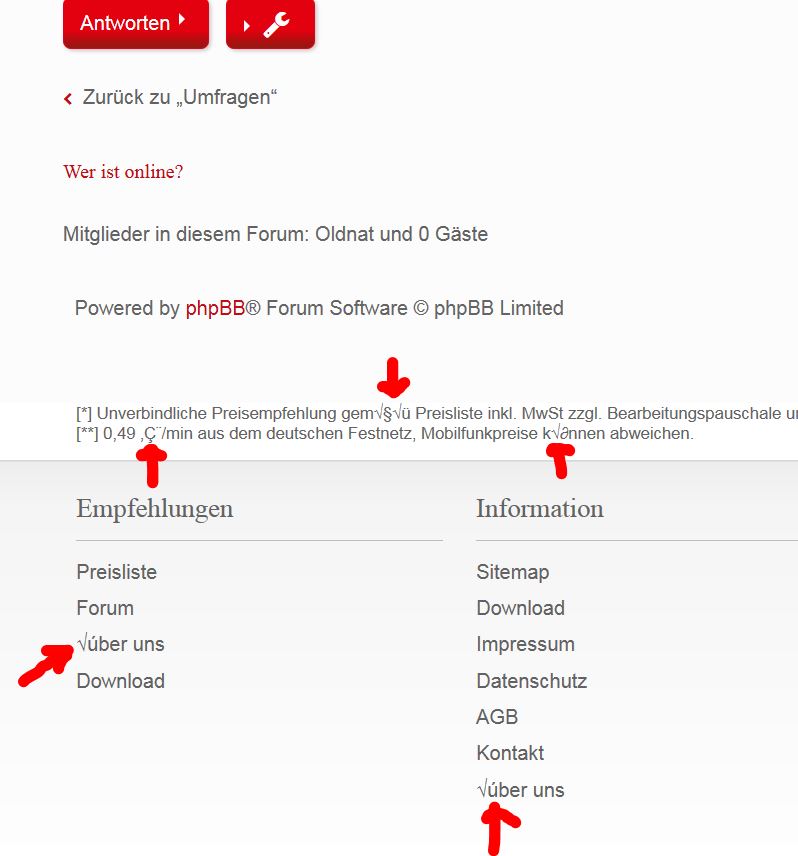 Wahrscheinlich ist es auch noch nicht ganz fertig. Pro: Schnell wieder online "Schraubenschlüssel" Menü "Gehe zu" Menü Sicher noch mehr, habe nicht alles durchgestöbert. Kontra (multipliziert mit null-komma-nochnichtfertig): Zitate sind sehr schlecht zu sehen, muss besser hervorhegoben werden. Avatare sind weg / (noch) nicht da Smileys sind weg / (noch) nicht da / nicht sichtbar Encoding sieht komisch aus, Muster: Unverbindliche Preisempfehlung gem√§√ü Preisliste inkl. MwSt zzgl. Bearbeitungspauschale und evtl. anfallender Versandkosten. 0,49 ‚Ǩ/min aus dem deutschen Festnetz, Mobilfunkpreise k√∂nnen abweichen. Die Links oben zu Abmelden,Persönlicher Bereich usw. funzt nicht. Das "Über uns" verdeckt die unteren, nicht aktive klickbaren Items. Mir fehlt die Wiederholung von "neue Beiträge" usw. von unten (oben ist es noch da). Ich werde es auch vom Handy testen. LG Old Nat, der Dino