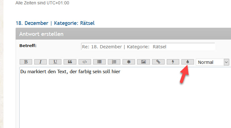 Re: 18. Dezember | Kategorie: RätselDu markiert den Text, der farbig sein soll hier