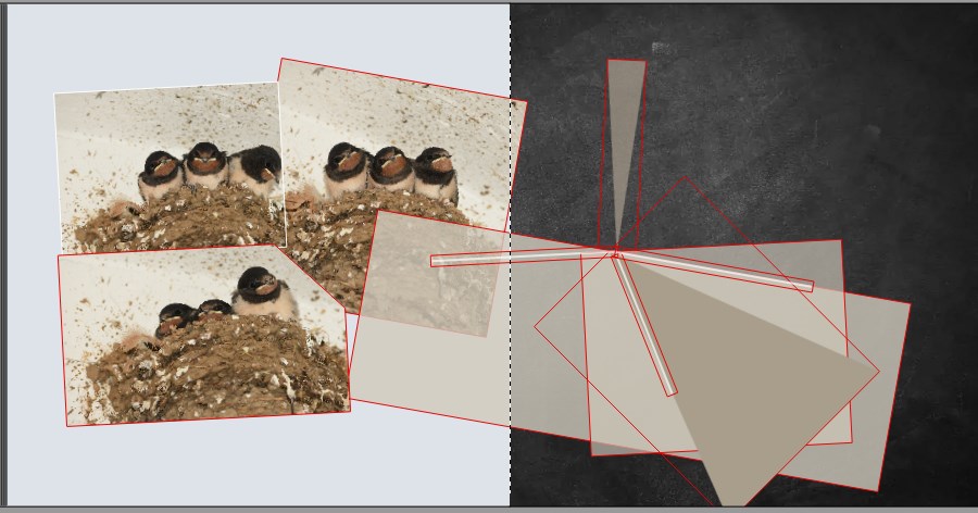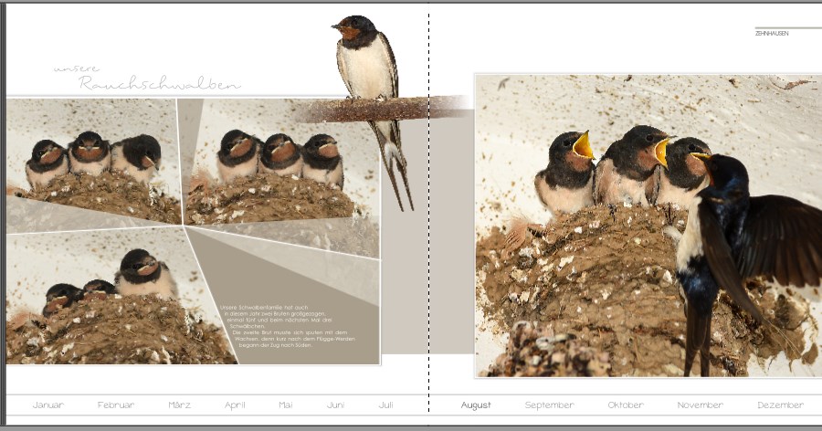 Für unsere Rauchschwalben-Familie habe ich Formen mit einfarbigen Bildern, Transparenzen und Überlagerungen erstellt.