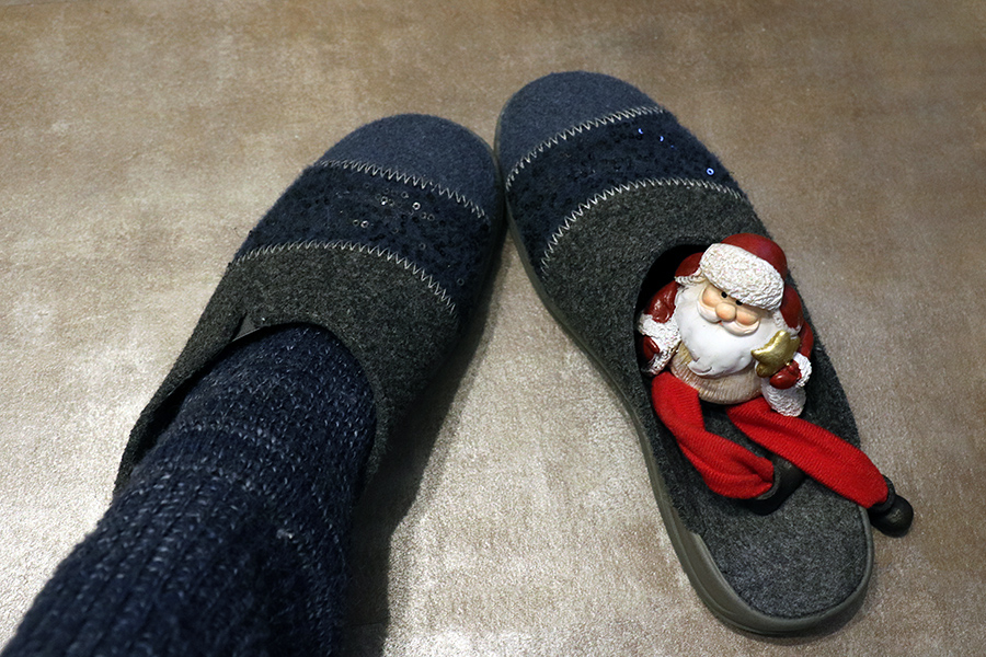 Re: 5. Dezember | Kategorie: FotografieGuten Morgen, ich möchte euch meinen heutigen Begleiter Klausi vorstellen. Als ich aufstehen und mit meinen selbstgestrickten Socken in die warmen Hausschuhe schlüpfen wollte, hatte er sich schon darin breit gemacht. Gut, dass ich ihn gleich entdeckt habe, sonst hätte ich ihm vielleicht noch weh getan. Ob er wohl hier übernachtet hat?