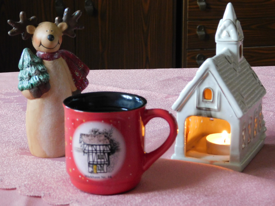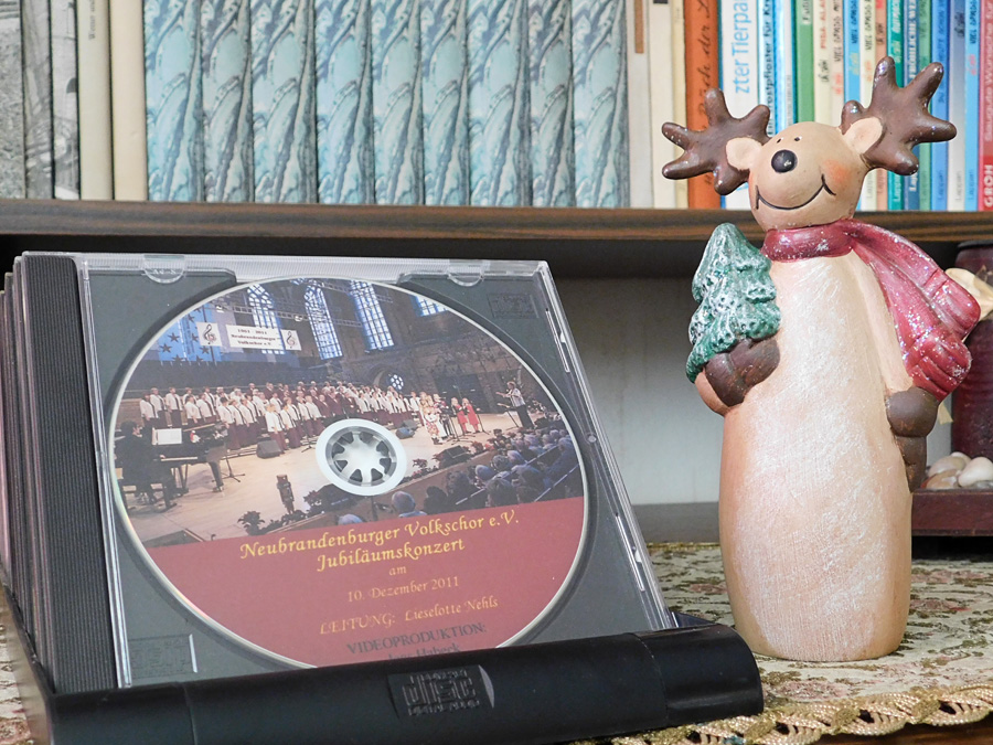 Rudolph! Er hatte wohl auch schon einen rentiermäßigen Frühstückshunger. So, und nun die Kerzen angezündet. Und wer ist schon wieder da? Rudolph! Jetzt wollt ich mir noch eine schöne Weihnachts-CD aussuchen. Tja, was soll ich sagen? Rudolph war schon wieder vor mir da. Liebe Grüße