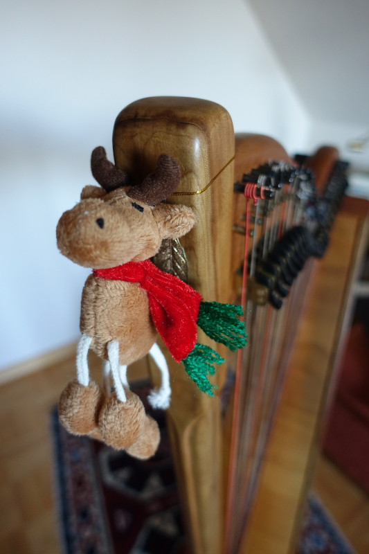 Re: 5. Dezember | Kategorie: FotografieIch lasse mich heute begleiten von Dancer. Überlicherweise hält er einen langen Sommerschlaf. Alljährlich zur Adventszeit tritt er immer dann auf wenn ich Musik mache. Heute durfte er schon früh in meine Harfentasche.