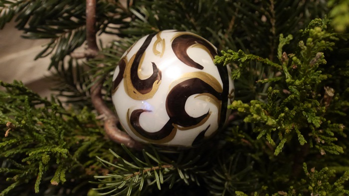 Re: 10. Dezember | Kategorie: Fotografieeine Christbaumkugel in hoffentlich weiß, braun und gold