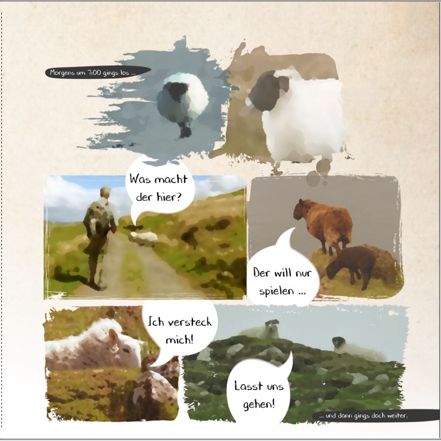 Liebe Forenteilnehmer, die heutige Aufgabe liegt außerhalb unserer bisherigen Gestaltungsideen und wird sicherlich für den ein oder anderen Gestalter eine große Hürde darstellen. Ich schließe mich davon nicht aus und freue mich daher ganz besonders auf Ihre Anregungen. Aufgabe: Comic Das können Sie gewinnen: Amazon Gutschein im Wert von 100 Euro Für kleine und große Wünsche! Mit Ihrem Gutschein können Sie sich im Shop Ihre Wunschartikel aussuchen. CEWE Gutschein im Wert von 50 Euro Fotogeschenke haben immer Saison! Gestalten Sie tolle Geschenke für jeden Anlass und jede Gelegenheit. Wählen Sie Ihr Lieblingsprodukt in unserem Portfolio. Ein Datenspeicher in einem witzigen Design - Der USB-Stick in Form einer CEWE Fotostation hat eine gummierte Oberfläche, die Ihren 8GB-Stick sicher beschützt. Der Stick verfügt über einen 2.0 Anschluss. Größere Datenmengen lassen sich damit in kürzer Zeit auf den USB Stick übertragen. So wird der Gewinner ermittelt: Nach Ablauf der Spieldauer können Sie Ihren persönlichen Gewinner wählen. Dazu stelle ich eine kleine Umfrage bereit, die um Mitternacht des Bereitstellungstages geschlossen wird. Die Einreichung mit den höchsten Wertungen bzw. der Teilnehmer mit der höchst gewerteten Einreichung erhält den Gewinn. Spieldauer: Die Adventsaufgabe startet mit der Veröffentlichung und endet um Mitternacht des im Betreff genannten Spieltages! Hinweis: Für die Teilnahme an diesem X-Mas Special ist ein Posting mit Ihrer kreativen Idee zum Thema erforderlich. CEWE vergibt pro Adventsaufgabe einen Hauptpreis. Nach Abschluss der täglichen Adventsaufgabe wird der Gewinner im Forenbeitrag genannt und schriftlich benachrichtigt. Wir wünschen Ihnen viel Glück bei unserer Adventsaufgabe und wünschen Ihnen eine besinnliche Weihnachtszeit. Lust auf weitere Gewinnchancen? Dann schauen Sie täglich in diesen Forenbereich. Es warten tolle Herausforderungen und interessante Gewinne auf Sie! Sylke Re: 21. Dezember | Kategorie: KreativesDas ist mein erster selbst gemachter Comic. Und die Herstellung war fummelig und aufwändig. Ich habe ein paar Schafe auf große Reise geschickt. Weit sind sie noch nicht gekommen ...