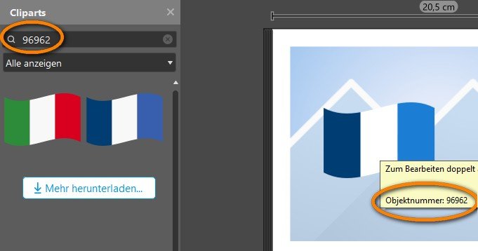 Hallo phili,vielleicht ist das nur konsequent, da das Clipart ja modifiziert wurde und folgerichtig nicht eindeutig im Katalog identifiziert werden kann. Anders verhält es sich, wenn das farblich veränderte Clipart als Vorlage gespeichert wurde (dann auch zu finden in der Kategorie "Meine Cliparts"). In dem Fall wird das Clipart in dem thematischen Katalog gefunden und blau hinterlegt. Eine andere Möglichkeit ist, die Objektnummer im Suchfeld einzugeben, dann werden gefiltert das ursprüngliche Clipart und alle farblich modifizierten Cliparts (sofern als Vorlage gespeichert) angezeigt. Re: Verwendete Cliparts finden in der V 7.1.2Hallo okular,