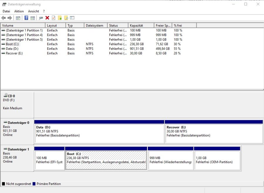 Zu 1: auch wenn ich ein ganz neues Projekt erstelle, hängt sich der Editor auf. (Ich wähle das große Fotobuch aus, wähle Hardcover aus... und der Editorbildschirm öffnet sich mit dem kleinen Fenster "Lade Editor 40%" und das Programm friert ein) Zu 2: ich verfüge über Schreib- und Leserechte für den Ordner C:\ProgramData\tmp. Auch wenn ich einen neuen Ordner (C:\Cewe_temporäre_Daten) für die temporären Daten auf C anlege habe ich dasselbe Problem. Zu 3: C (Boot) und E (Recover) auf der SSD und D (Data) auf der HDD (siehe Anhang) Zu 4: Warum sollte ich aus dem Google Play Store eine Android Version von Cewe auf meinen Windows 10 64 Bit Laptop laden? Viele Grüße, Florian Re: Programm hängt sich bei "Lade Editor" auf (7.1.2/7.1.3)Hallo Florian1234,