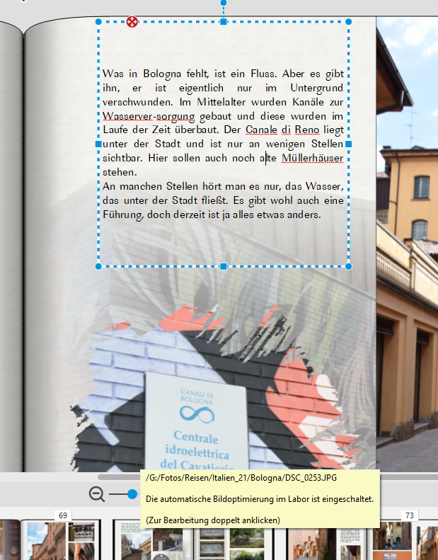 Re: V.7.1.3 Textbox: falsche Darstellung des Schriftbildes während EingabeMonika54 hat geschrieben: Ist das der von euch beschriebene Fehler? Muss man damit leben? Bei diesem Buch habe ich wenig Text, aber es ist trotzdem nervig. dein Problem ist genau das, was hier schon beschrieben wurde. Manchmal hat es bei mir geholfen, wenn ich das Textfeld nur ein 1/10 mm vergrößert oder verkleinert habe, manchmal war es aber am einfachsten, die Text zu kopieren, das Textfeld zu löschen, ein neues Textfeld öffnen und den kopierten Text wieder einfügen. Auf jeden Fall ist es nervig. Monika54 hat geschrieben: