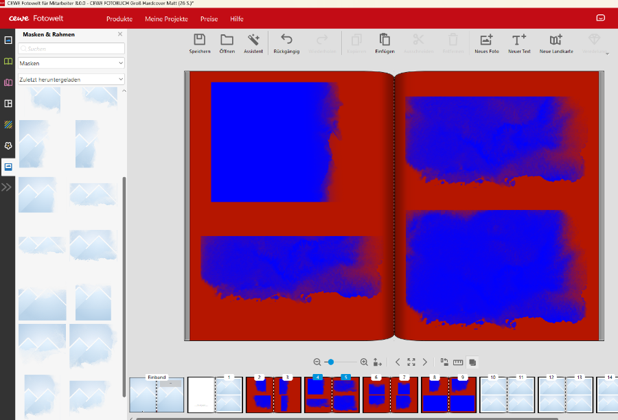einige der fehlerhaften Masken wurden in der aktuellen Software-Version 8.0.0 überarbeitet und sollten jetzt keine ungewollten Kanten mehr aufweisen. Überprüft haben wir dies für folgende Nummern und da sollte jetzt alles stimmen: 1446346 1460346 1460347 1460348 1460349 1460350 1460351 1460352 1460353 1460354 1460358 1460359 1460360 1460361 1460362 1460363 1466346 1466347 1466348 Tipp zum Überprüfen: Auf die Seite einen roten Hintergrund legen, ein einfarbiges blaues Foto (habe ich angehängt) einfügen und die Maske darauf anwenden. Da die Farben sehr unterschiedlich sind, macht sich ein eventueller Rand sofort bemerkbar. Jedenfalls, wenn man reinzoomt. Viele Grüße