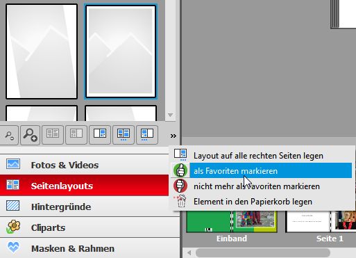 wie meine Vorredner bereits geschrieben haben, ist dies leider nicht möglich. Wenn Sie jedoch wenige Layouts bevorzugen und diese häufig verwenden, ist die manuelle Erstellung durchaus sinnvoll. So einfach geht es: 1. Wählen Sie ein Layout aus 2. Platzieren Sie ein kleines Textfeld mittels des Seitenrasters 3. Speichern Sie das Layout mit der Funktion "Layout speichern" ab 4. Führen Sie die Schritte 1-3 ggf. noch mit weiteren Layouts durch 5. Wenden Sie diese Layouts nun nach Bedarf an und passen Sie die Seitenzahl manuell an. Mein Tipp: Ab Version 5.1. können Sie alle Inhalte (Layouts, Cliparts, Hintergründe, Masken und Rahmen) als Favorit markieren. Dazu brauchen Sie einfach nur den gewünschten Inhalt auswählen und auf "Favoriten markieren" klicken. Sylke Re: Seitenzahl auf einzelnen Seiten ausblendenVielen Dank Sylke,